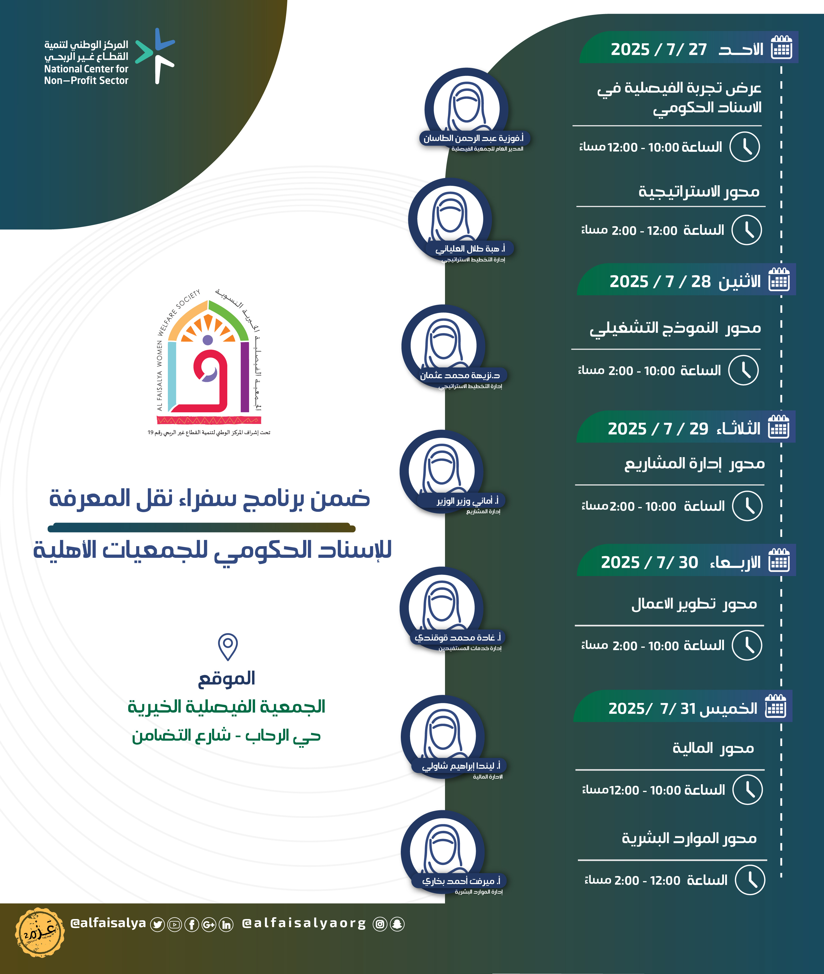 تاريخ الفعالية: 2025-07-27 / 2025-07-31 مكان الفعالية: مقر الجمعية رابط التسجيل: التصنيف: عدد المشاهدات: 8